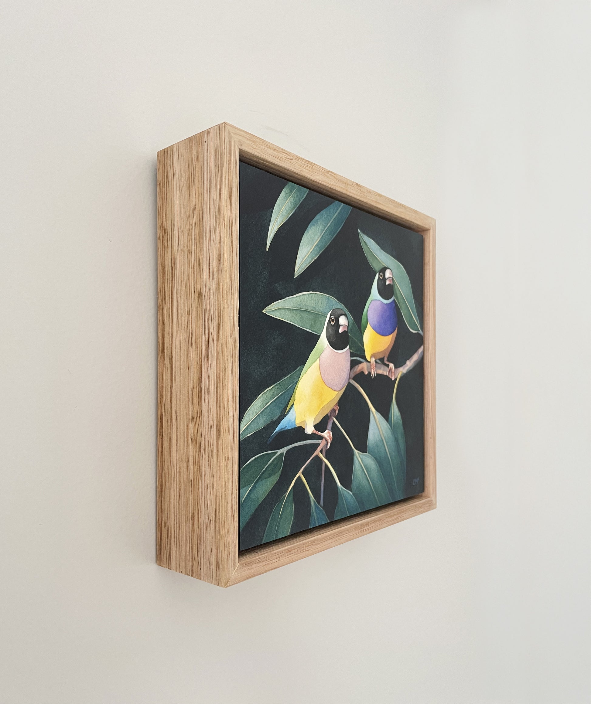 Gouldian Finches #1, 23x23cm, Framed